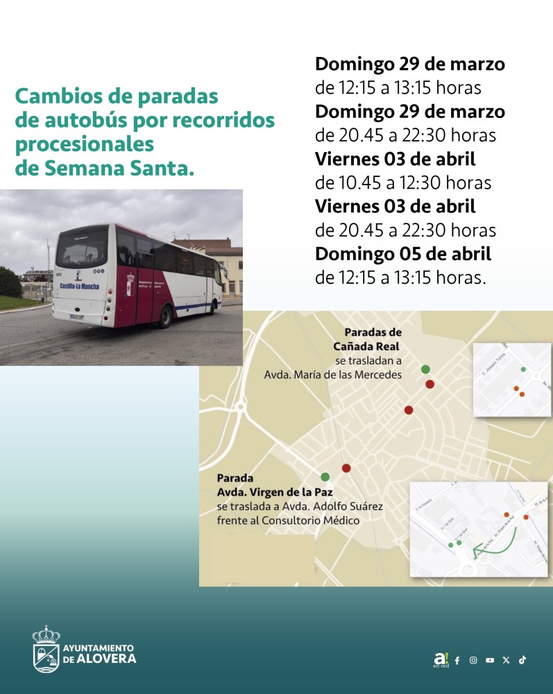 CAMBIO DE PARADAS POR PROCESIONES SEMANA SANTA