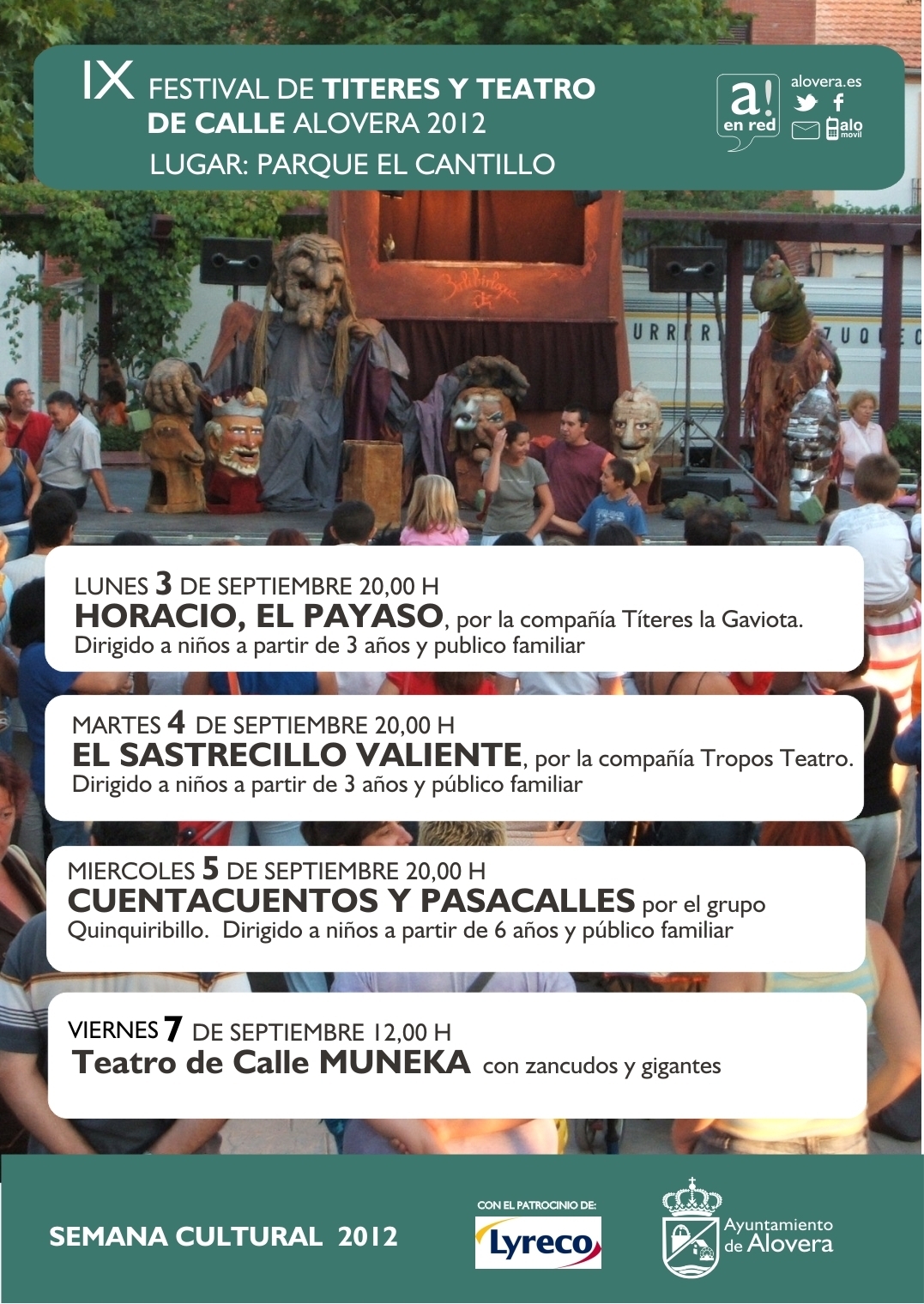 La actividad, organizada desde la Biblioteca Municipal, está patrocinada íntegramente por la empresa LYRECO con una colaboración económica que ha ascendido a 3.000 euros. LYRECO, es una empresa mundial de distribución de material de oficina, con sede en Alovera desde hace más de diez años y con sedes en multitud de puntos de toda la geografía mundial. LYRECO, lo que anteriormente era OFISERVICE, es una empresa muy comprometida con el municipio, y sobre todo con la actividad cultural dirigida al sector infantil. Purificación Tortuero Pliego, Alcaldesa de la localidad, señala “Gracias a este patrocino para nosotros tan importante, este año se ha podido organizar este tradicional Festival de Títeres que toda la familia podrá disfrutar, y que para Alovera es ya todo un clásico”