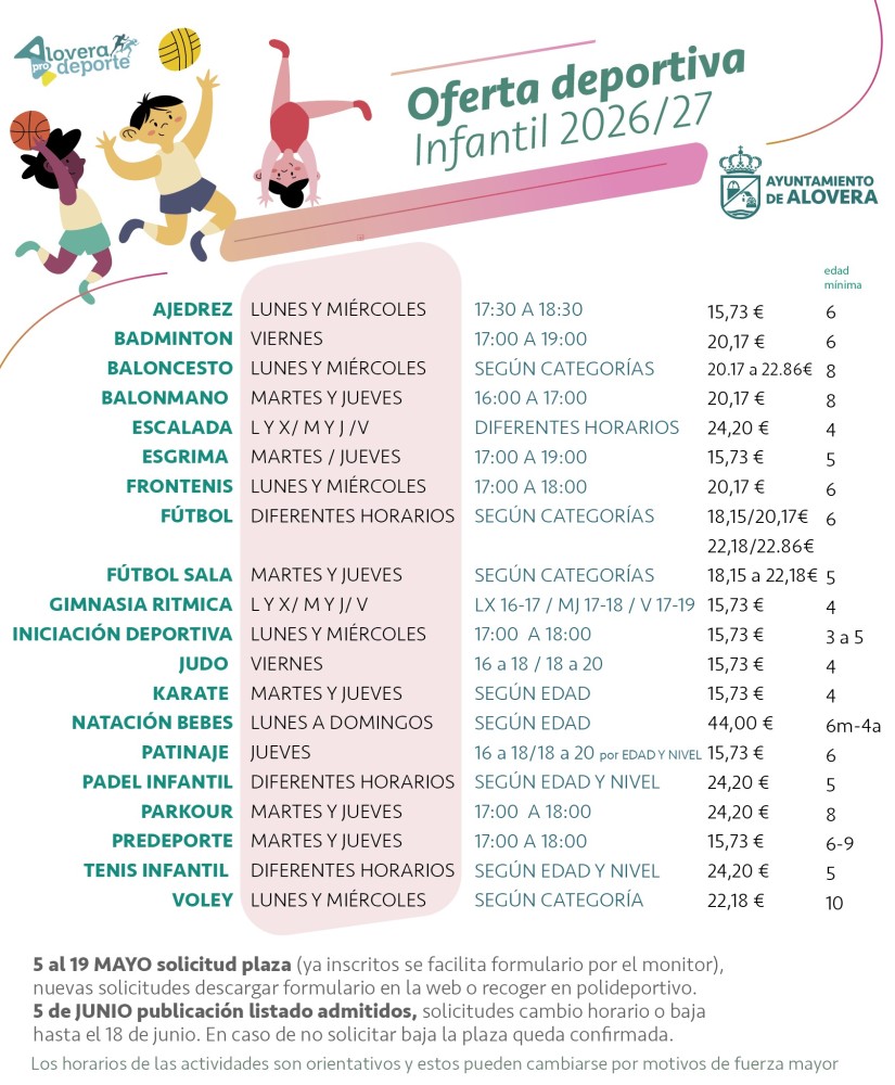 Para el próximo curso desde el 5 de mayo tanto infantil como adultos.