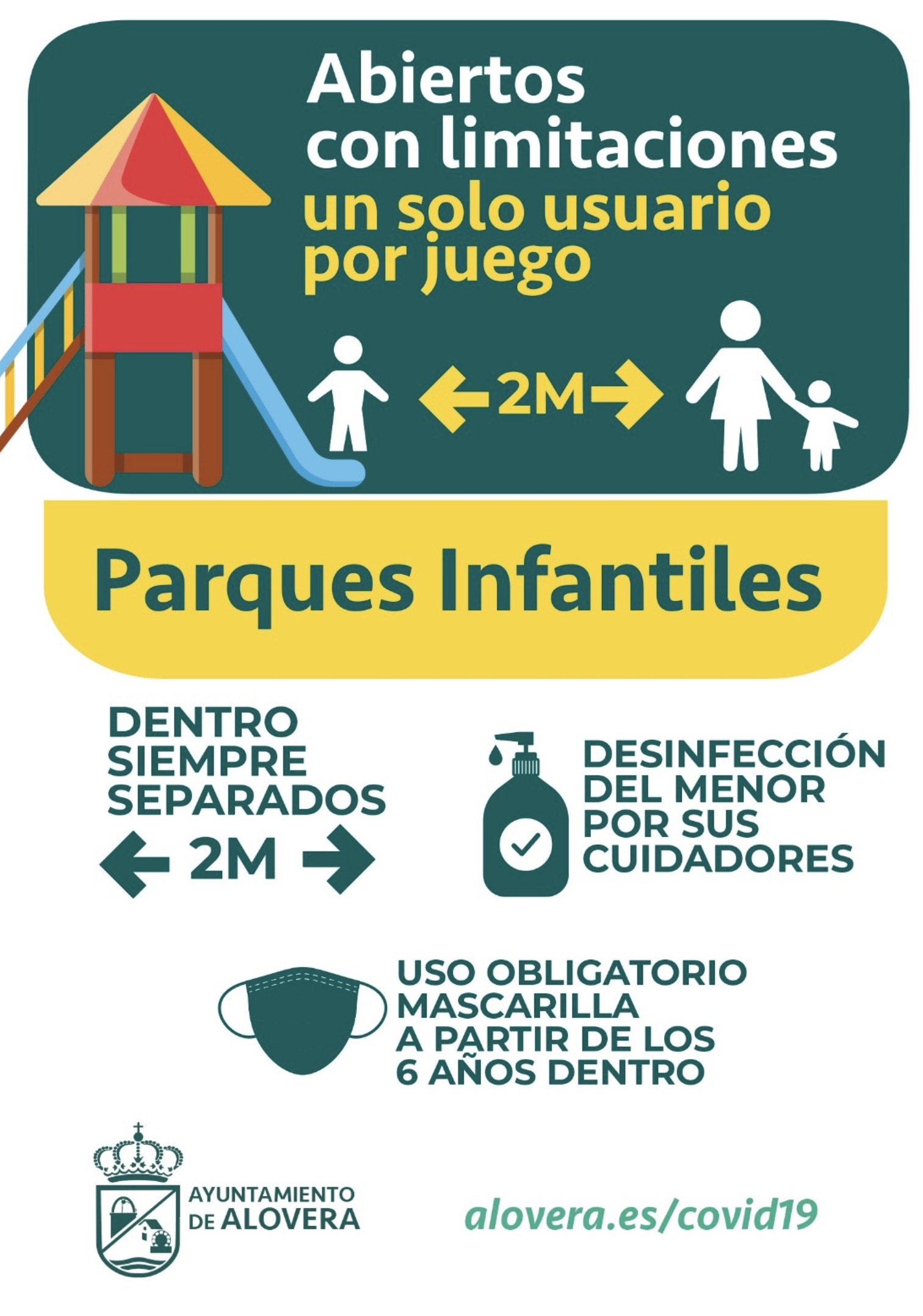 - Garantizar siempre los dos metros de distancia entre menores por parte de los padres.