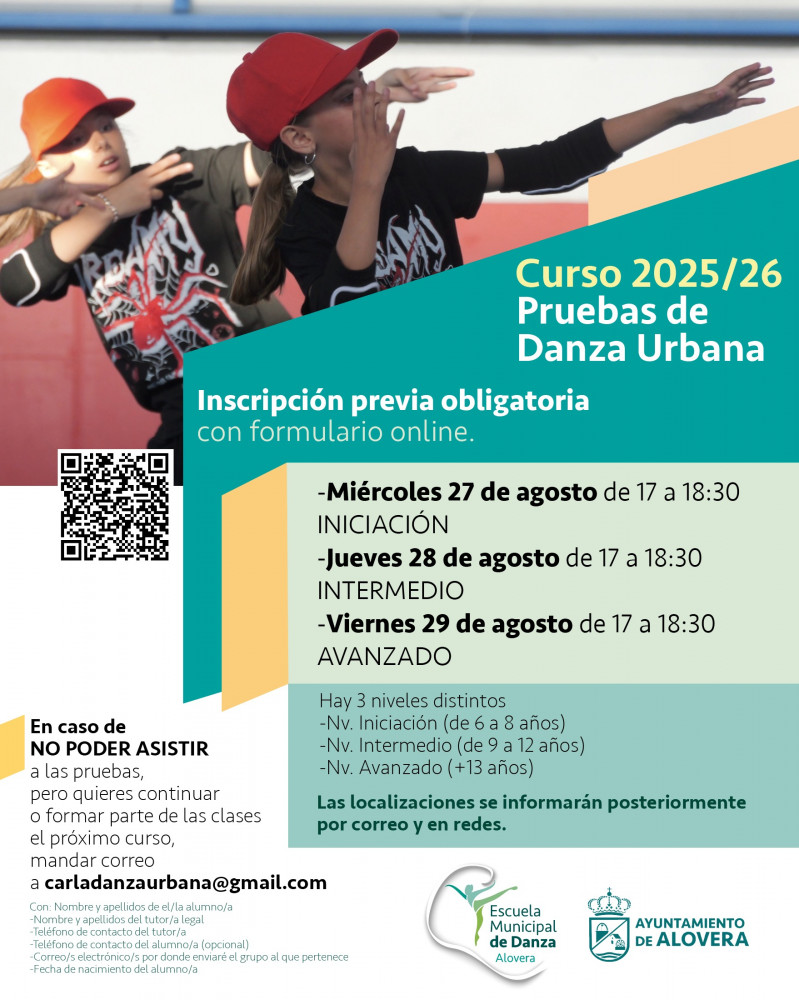 • En caso de NO PODER ASISTIR a las pruebas pero quieres continuar o formar parte de las clases el próximo curso, mandar la siguiente información al correo carladanzaurbana@gmail.com: