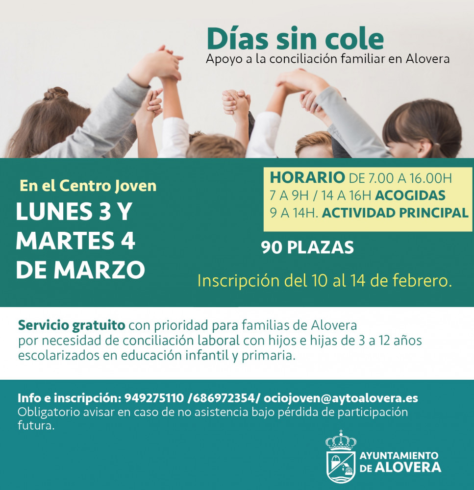 Acompañamiento familiar días no lectivos Para los días 3 y 4 de marzo para las familias con necesidades de conciliación. Inscripción del 10 al 14 de febrero.