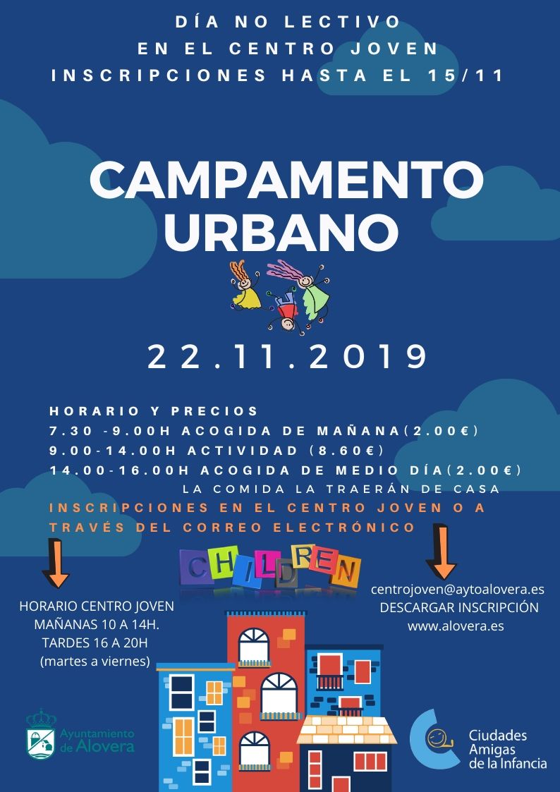 El Ayuntamiento de Alovera oferta el servicio de Campamento Urbano en el periodo vacacional y días no lectivos durante todo el año, para niños y niñas de 3 a 12 años de Educación Infantil y Primaria.