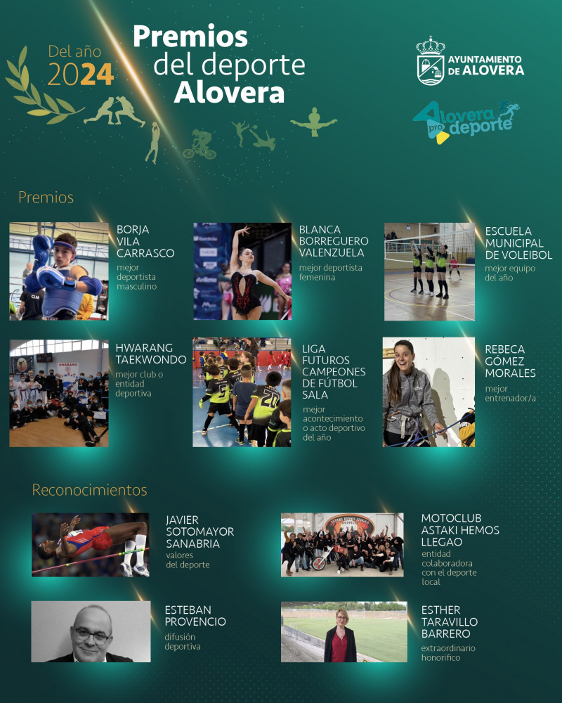 Un año más el deporte de Alovera tiene en la convocatoria de los “Premios del Deporte” local un referente de reconocimiento de los deportistas y agentes que permiten identificar los valores, resultados y acciones que simbolizan lo mejor durante el año anterior.
