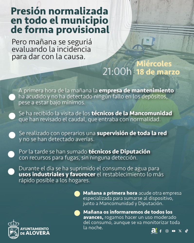 Se recomienda evitar consumo de agua y uso de electrodomésticos asociados al consumo de agua.